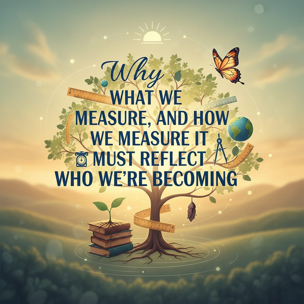 Excellent framing of the output-versus-formation tension. The shift from measuring what students produce to assessing who they're becomming is crucial, especially since AI can now generate technically perfect work that says nothing about learning. What really lands is the insight that asessment reveals values if educators keep testing for surface compliance instead of depth, we're basically training students to game systems rather than develop capacities.